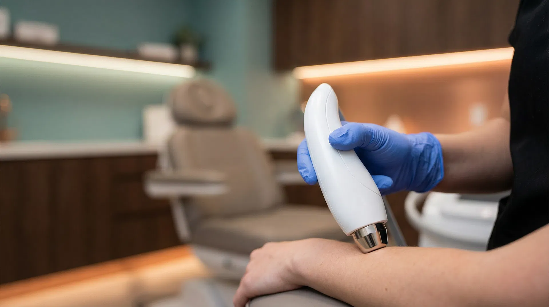 No anesthesia required. Patients describe the treatment as a warm massage. Safe for Fitzpatrick skin types I-VI with zero downtime.